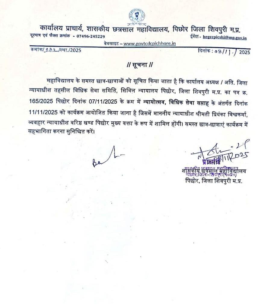 November 8, 2025 Mr. Rajendra Singh Himauriya 0 Comments शैक्षणेत्तर गतिविधियां न्यायोत्सव, विधिक सेवा सप्ताह कार्यक्रम 11/11/2025 न्यायोत्सव, विधिक सेवा सप्ताह कार्यक्रम 11/11/2025