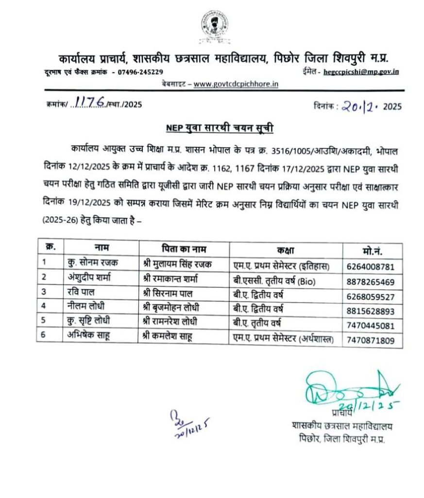 December 20, 2025 Mr. Rajendra Singh Himauriya 0 Comments शैक्षणेत्तर गतिविधियां NEP युवा सारथी चयन सूची (2025-26)